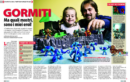 departamento de contabilidad. Un día comentó con sus compañeros que tenía en mente un juego que permitiría a muchos niños comprar muñecos de bajo coste y vivir una fantasía con bases morales; sus jefes le escucharon y apostaron de inmediato por su idea, encargando a Consumi que la llevara adelante. Pudo entonces desarrollar todo lo que venía gestando en su mente durante años; dio vida a multitud de personajes, diseñó su apariencia, facultades y carácter, les preparó guiones e inventó historias para dar consistencia a su entorno. Es posible, incluso, que fuera él quien diseñara las primeras cartas antes de que Enrietto fuera encargado de las ilustraciones. Una de sus frases es: «Soy el papá de 130 monstruos». A la vista del resultado, la historia de los Gormiti parece el premio a un niño –Leandro- que mantuvo siempre su ilusión y la vio convertirse en realidad.